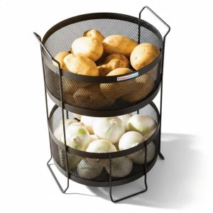 این محصول با طراحی دو طبقه مشبک، جریان هوای طبیعی را حفظ می‌کند که باعث ماندگاری بیشتر موادی مانند سیب‌زمینی، پیاز و میوه‌ها می‌شود.