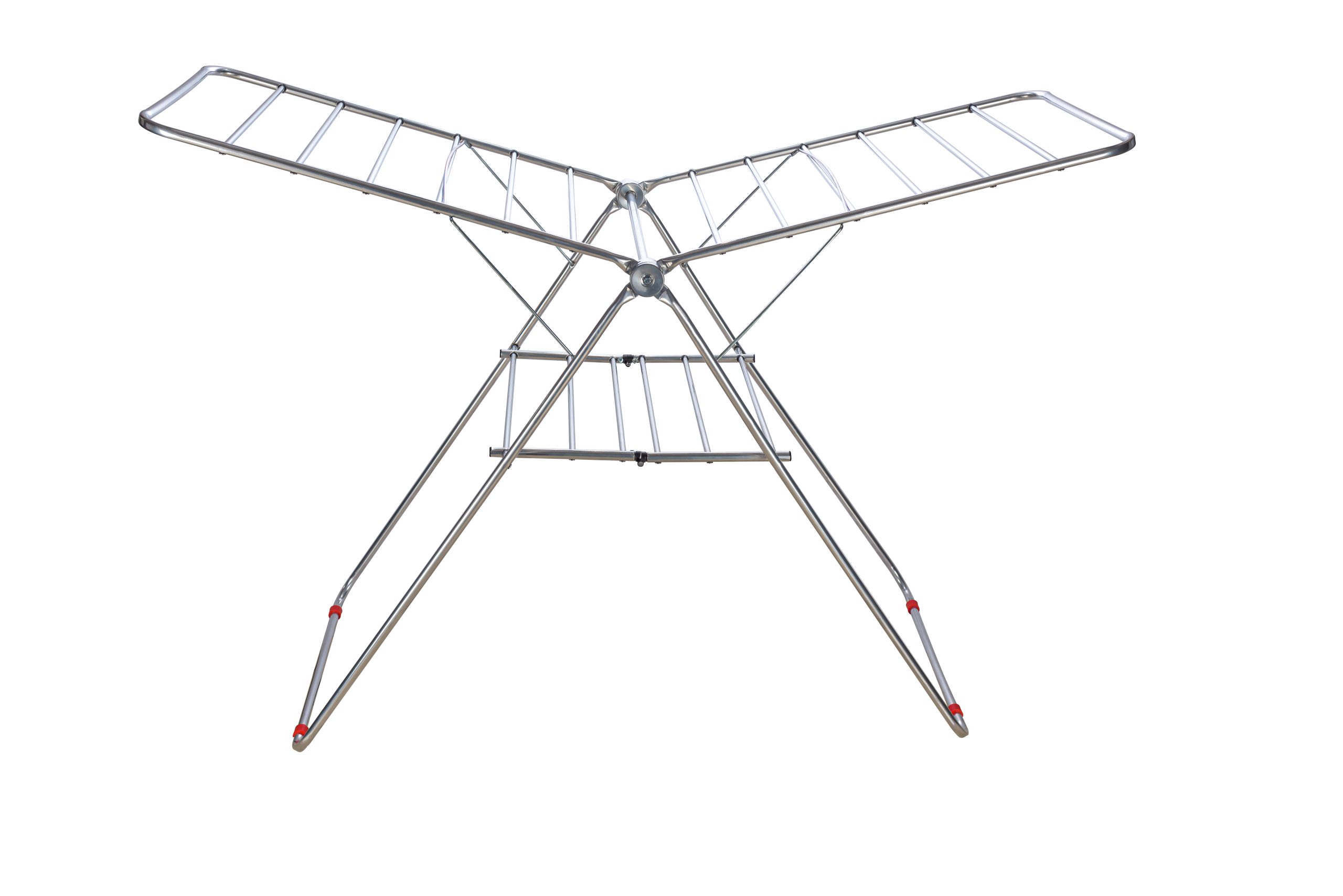 این مدل با پایههای مستحکم و اتصالات بادوام، قادر است وزن زیادی از لباسهای مرطوب را بدون لغزش یا خم شدن تحمل کند. بخشهای قرمز رنگ در نقاط اتصال، زیبایی و ایمنی بیشتری را به ساختار کلی محصول میبخشند.