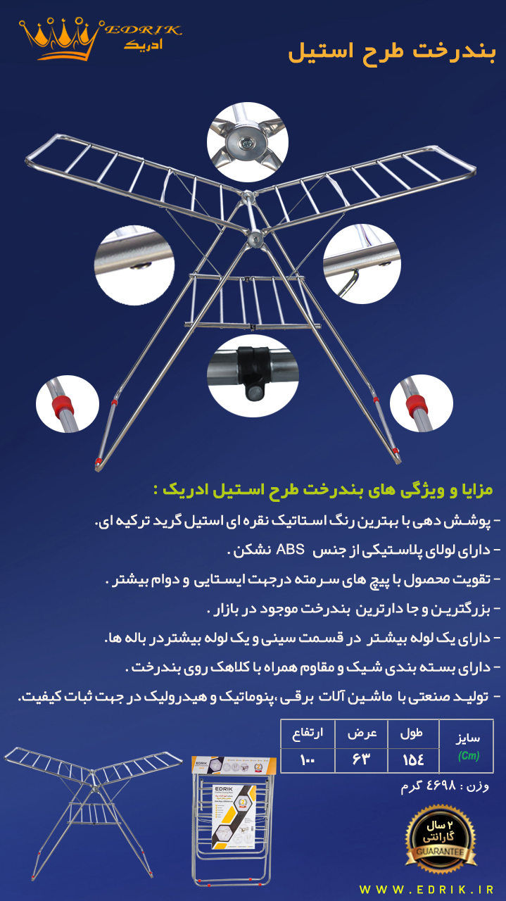 بند رخت ادریک مدل استیل — مقاوم، زیبا و جمعوجور