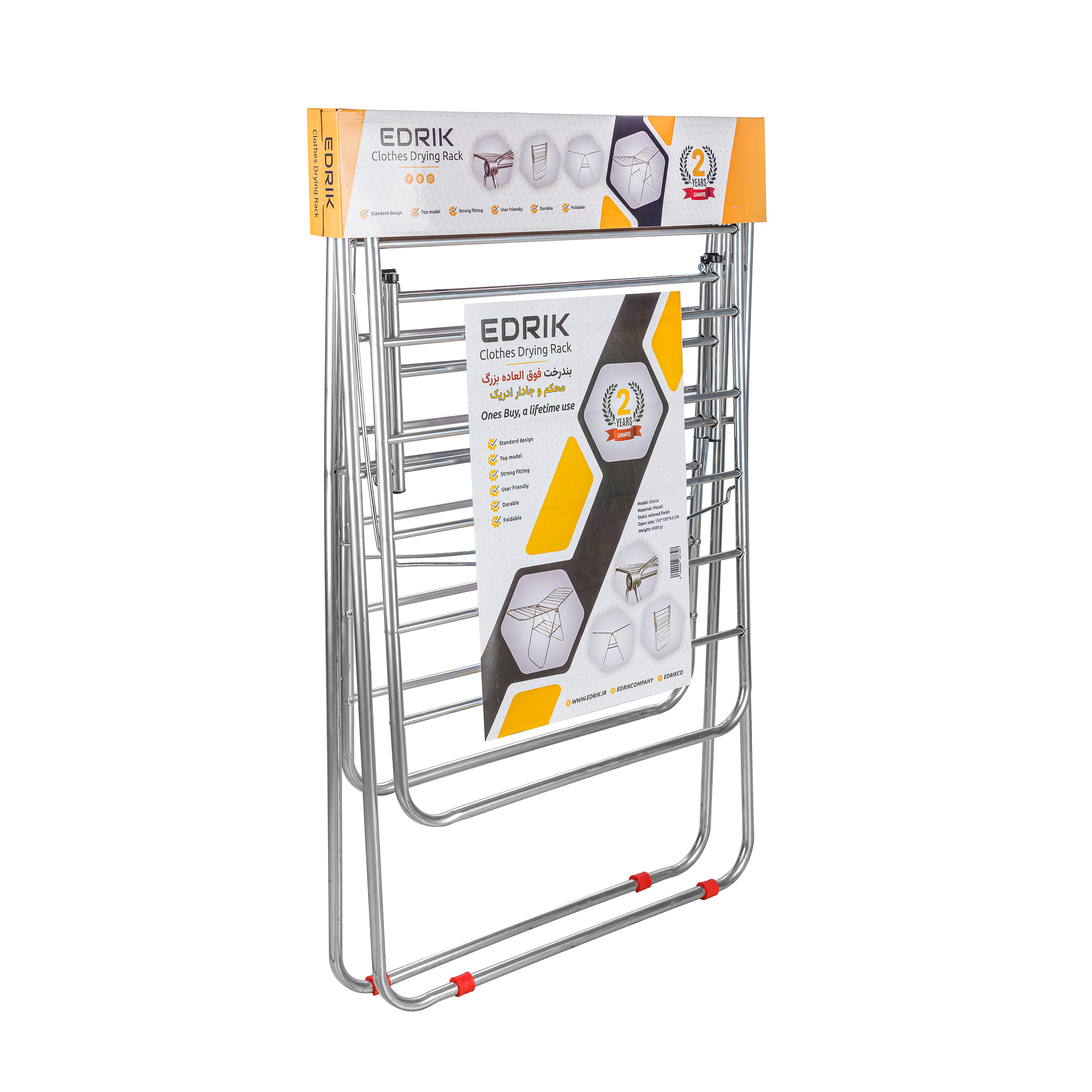 بند رخت ادریک مدل استیل با طراحی خاص و بدنهی مقاوم از استیل ضد زنگ، یکی از کاربردیترین گزینهها برای خشک کردن لباسها در فضای منزل یا بالکن است. طراحی “بالهای پروانهای” این بند رخت، فضای گستردهای برای آویختن حجم زیادی از لباسها فراهم میکند و در عین حال با قابلیت تاشو بودن، پس از استفاده به آسانی جمع میشود و فضای اندکی اشغال میکند.